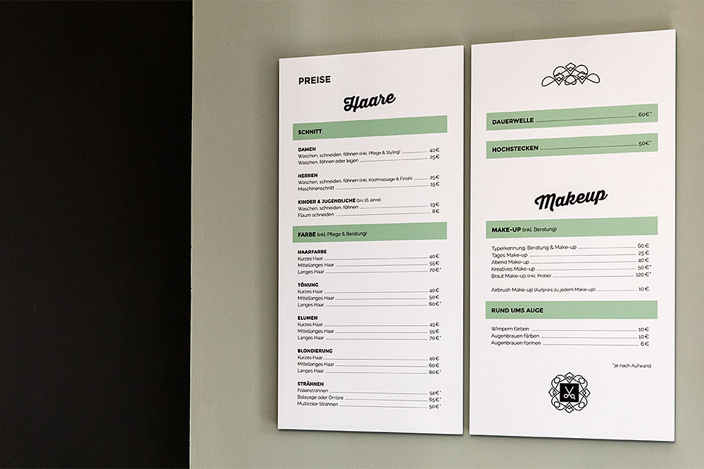 Für Ihr neues Unternehmen entwickeln wir das Corporate Design, gestalteten die Printmedien sowie die Außenwerbung und Beschilderung am Haus. Zu den verschiedenen Printprodukten gehörten unter anderem Flyer zur Eröffnung, Visitenkarten mit rückseitiger Terminerinnerung für die Kunden und eine Preistafel für den Innenraum. Im Außenbereich gestalteten die Werbeagentur exakt die Firmenschilder sowie die Schaufensterbeklebung. Das gesamte Team der Agentur exakt wünscht den Beiden einen guten Start und viel Erfolg!