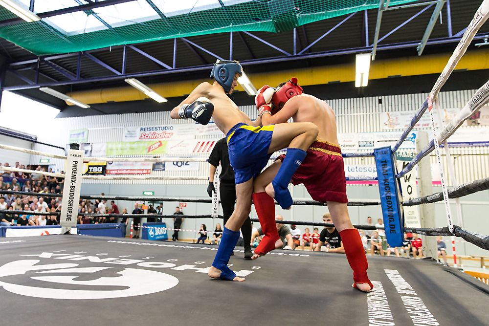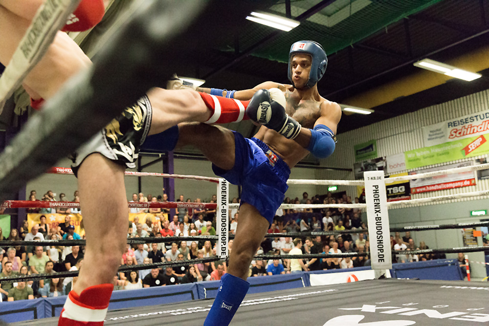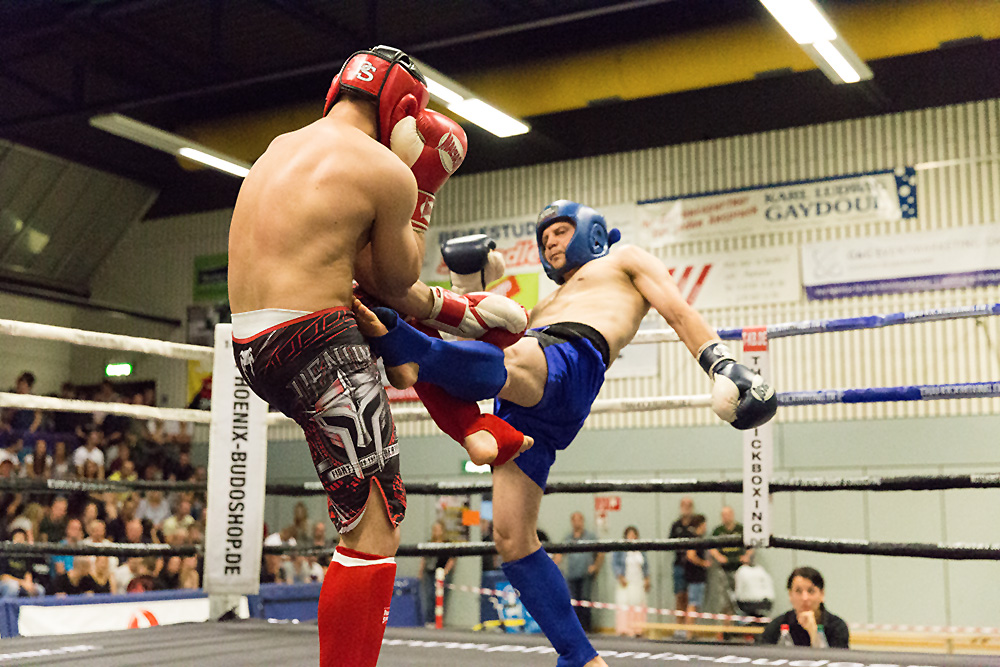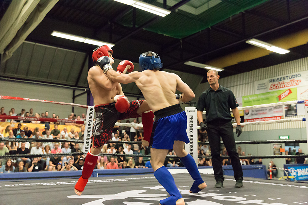 Sportfotografie „abends“ in der Halle ist schon eine echte Herausforderung für jeden Fotografen. Hier ist vor allem das Zusammenspiel mit der Blende, der Verschlusszeit und dem ISO-Wert entscheidend. Mit einer Blende von 2.8 bis 6.8 und einer hohen ISO Einstellung konnten wir eine Verschlusszeit von ca. 1/600 bis 1/1000 erreichen und so die schnellen Bewegungen der Kampfsportler gut einfrieren. Einige Bildbeispiele haben wir hier zusammengestellt.